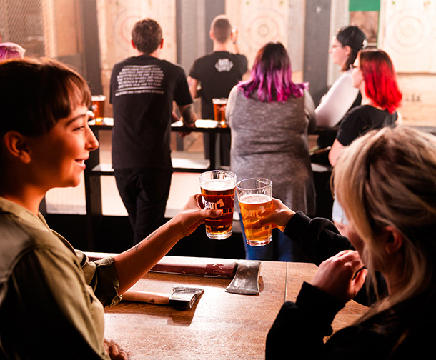 BATL Niagara offers private axe throwing group bookings for groups of 2 and up, and are perfectly suited to adult birthday parties, corporate team building events, bachelor/bachelorette parties, and much more. Our private events last 2-2.5 hours and are run in the safe and comfortable environment that BATL has become famous for by our expertly trained staff, who also happen to be the best axe throwers in the planet. They will run you and your guests through training to ensure that you’re all sticking bullseyes before launching you into a round-robin tournament, followed by a playoff (in order to crown a champion, of course). A little friendly competition is a key to any outing with friends, and BATL Axe Throwing also offers a fully licensed bar and food menu – so you can worry about throwing axes and leave the rest to us!